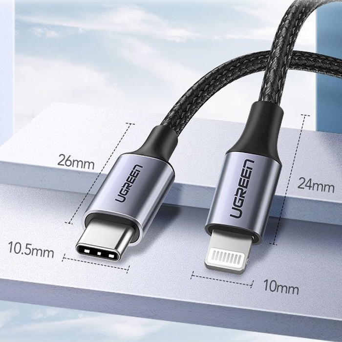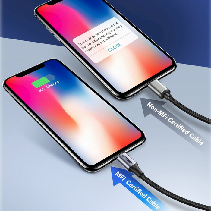 مبدل Type-c به Lightning یوگرین مدل US304 دارای گواهینامه MFI از اپل است. این کابل قابلیت فست شارژ با 3A را دارد و باطری را از 0% تا 50% را در مدت 30 دقیقه شارژ میکند، علاوه بر شارژ سریع امکان انتقال دیتا با سرعت 480 مگابیت بر ثانیه را هم برای کاربر فراهم میکند.