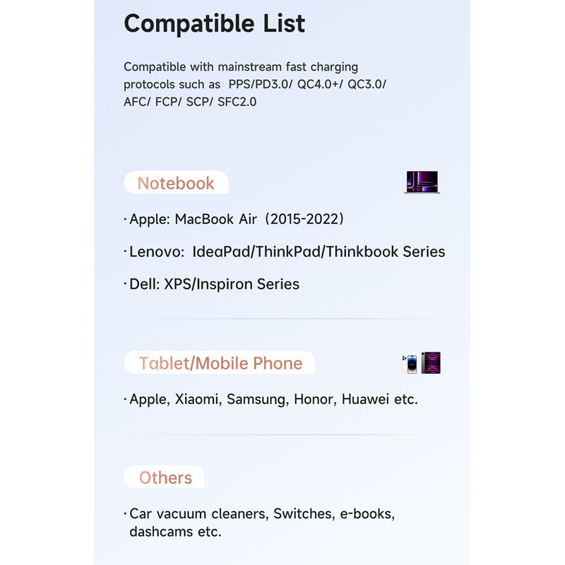 | توضیحات | USB-A OutputUSB-A: 5V⎓3A, 9V⎓3A, 12V⎓2.5AUSB-C Output5V⎓3A, 9V⎓3A, 12V⎓3A, 15V⎓3A, 20V⎓2.25A |