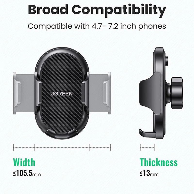 پایه UGREEN مدل LP405-20473 برخلاف پایههای استاندارد خودرو، بدون ایجاد مانع در دید به سمت پایین خم میشود و زاویه مناسبی را برای قرار دادن تلفن فراهم میکند تا بتوانید راحت از آن استفاده کنید. فقط یک دکمه را فشار دهید تا گوشی هوشمند خود را در نگهدارنده قرار دهید یا از آن جدا کنید. این مدل هنگام رانندگی در سختترین زمینها، نگهداری پایدار را فراهم میکند. می توانید پایه Ugreen LP405 را به راحتی به داشبورد هر خودرویی متصل کنید و دهانه وسیع پایه به شما امکان می دهد هر مدل گوشی هوشمند موجود در بازار تا اندازه 7.2 اینچی به آن وصل کنید.